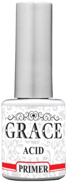 Кислотний праймер GRACE застосовується для підготовки натуральних нігтів до нарощування. Чинить знежирюючу, подсушивающtt дію. Забезпечує чудову адгезію штучних матеріалів із нігтьовою поверхнею. Використовується в гелевій та акриловій системах. Незамінний у разі гіпергідрозу (підвищеної вологості шкіри та нігтів), а також рекомендований тим, чиї нігті погано сприймають штучні матеріали (часто виникають відшарування, сколи, покриття не триматися належний за технологією термін). Невелика кількість Primer наноситься на натуральний ніготь, уникаючи потрапляння на шкіру. Кислотний праймер дозволяє уникнути відшарування, забезпечує максимальний термін носіння штучних нігтів.